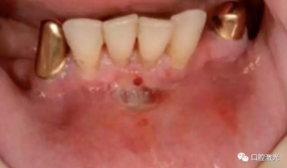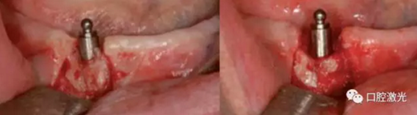 殺滅牙周袋中的細菌是治療此類細菌感染疾病的重點。大量的文獻已經(jīng)證明,口腔激光在此方面的具有顯著的效果。在利用傳統(tǒng)工具進行潔治后,通過口腔激光(半導體激光或釹激光)對種植體表面以及周圍軟組織進行照射殺菌,隨后還可利用口腔激光(半導體激光或鉺激光)對種植體周圍軟組織進行氣化切除。