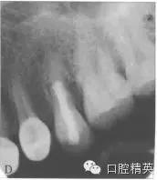 本病例由于長(zhǎng)時(shí)間未作治療,根中下段根管鈣化,根中上段根管吸收較粗大,斷端為肉芽組織式愈合。根折的預(yù)后一般比較差,并且經(jīng)常伴有咬合痛、深牙周袋、根周牙齦組織反復(fù)腫脹等。