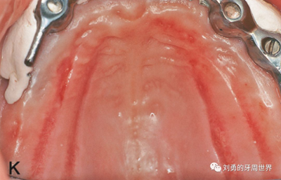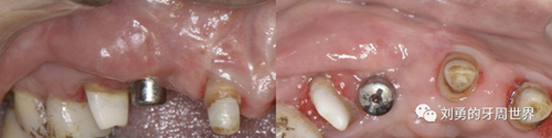 可見(jiàn)右上前牙植體頰側(cè)無(wú)附著齦