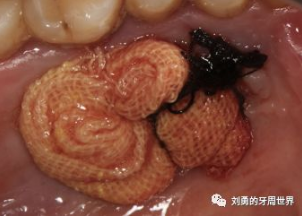 但是我們?cè)谂R床操作半厚瓣以后,受區(qū)的骨膜床上面常常有一些肌肉纖維或系帶的附著,這樣我們把供區(qū)齦瓣固定在受區(qū),那么術(shù)后齦瓣就愈合在了這些可移動(dòng)纖維的表面,那術(shù)后齦瓣受到這些纖維的影響就沒(méi)有形成不可移動(dòng)的穩(wěn)定的附著齦,而是可以移動(dòng)的角化齦,那么手術(shù)就以失敗告終。