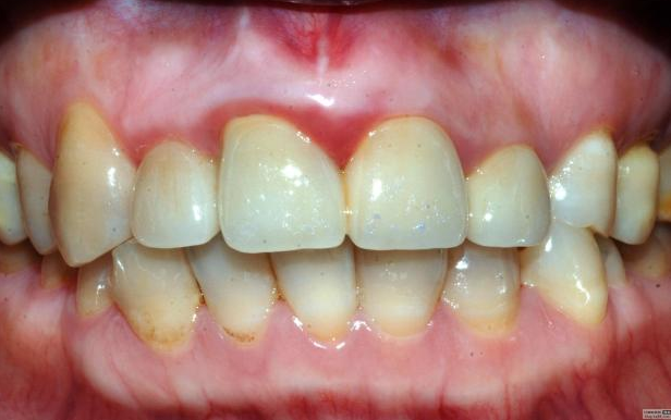 先不評論修復(fù)體的顏色、形態(tài)、密合性及生物學(xué)寬度的問題,就患者而言對修復(fù)體還是比較滿意的,是因?yàn)樾迯?fù)后不久牙齒開始疼痛,吃了好多藥也不起作用才來就診檢查的,但患者剛開始不愿拆冠,經(jīng)過詳細(xì)的溝通后才同意拆冠——冠延長術(shù)——根管再治療——愈合——重新修復(fù)。可見患者雖然花了較高的費(fèi)用,但對我們醫(yī)生的要求還是很低的,但就是這么低的要求也不見得所有醫(yī)生能夠滿足患者。這個患者即使冠沒有問題,也得拆冠?;颊咭彩茄捞鄄艁碓\治的,在修復(fù)之前一定要做完善的根管治療。