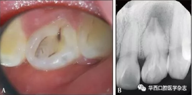 牙內陷是牙發(fā)育期成釉器過度卷疊或局部過度增殖深入到牙乳頭所致,臨床表現(xiàn)為腭側溝或凹陷、圓柱狀或錐狀牙、畸形舌側尖、過大牙、過小牙,常見于上頜側切牙。本文報道采用根尖屏障技術治療Ⅱ型牙內陷引發(fā)慢性根尖周炎1例。