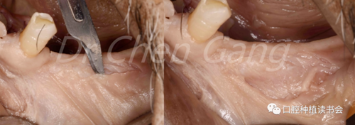 3.2.1 36翻全厚瓣后,行頰側(cè)及舌側(cè)組織瓣松解(圖11)