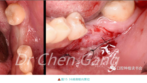 3.3.2 上腭取游離牙齦,移植于36頰側(cè)(圖16)