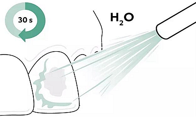4、 移除牙間隙中的薄膜注射頭,立即用水沖洗愛康酸蝕劑Icon-Etch至少30秒并用無水無油的氣槍吹干。