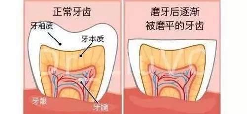 咀嚼側(cè)牙由于長期過度負(fù)重會導(dǎo)致磨損嚴(yán)重。當(dāng)牙齒遇到冷、熱、酸、甜性食物時出現(xiàn)酸痛等癥狀,更嚴(yán)重者會引起牙髓炎癥引起劇烈疼痛。