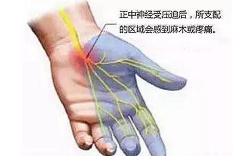 腕管綜合征,主要是外傷、勞損等引起的腕部病變或退變,壓迫到神經(jīng)時會引起手指麻木、無力,也可能伴有胳膊、手腕等處的麻脹感,手指靈活性降低。