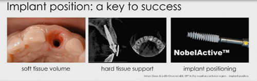 Tristan Staas教授通過臨床病例進(jìn)一步闡述植體偏腭側(cè)植入的重要性。即使在唇側(cè)軟硬組織均有缺損的Ⅲ類拔牙窩病例中,偏腭側(cè)植入植體,在有利型骨缺損中植骨,即刻種植也可以達(dá)到理想的效果。