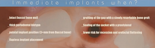 Jose Navarro教授主張所有跳躍間隙內(nèi)均應(yīng)植骨。異種骨具有替代慢、維持空間能力強(qiáng)、高度礦化、良好的支架作用等特點(diǎn),是跳躍間隙植骨的良好選擇。即刻種植時(shí)嚴(yán)格選擇病例可以盡可能降低牙齦退縮和唇側(cè)輪廓塌陷的風(fēng)險(xiǎn):