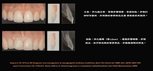 根據(jù)Maynard&Wilson牙周生物型分類,厚壁型(一、二類)跳躍間隙內(nèi)可不植骨,薄壁型(三、四類)跳躍間隙內(nèi)需植骨;薄齦生物型(二、四類)種植同期結(jié)締組織移植,降低牙齦退縮的風(fēng)險(xiǎn)。