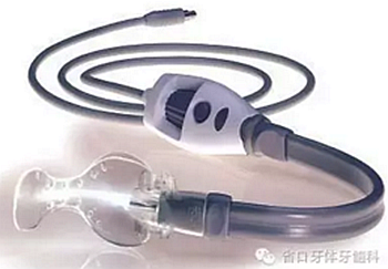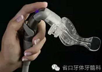 5) Isolite的使用[22](見附圖3 - 6):近年,美國Isolite Systems公司將一種新型的口腔隔濕產(chǎn)品———Isolite推向市場。Isolite的口內(nèi)附件由柔軟的、可以彎曲的硅膠材質(zhì)制成,創(chuàng)新的設(shè)計使其具備多種功能:口內(nèi)附件中空、表面有吸唾孔,可以通過負壓吸引而吸除口內(nèi)液體,保持操作區(qū)域的干燥;內(nèi)設(shè)LED光源可以提供術(shù)區(qū)充足的照明需要;咬合墊可以幫助患者長時間撐開口腔,減輕疲勞;舌部和頰部擋板可以保護頰側(cè)粘膜和舌體,防止在口腔診療中對軟組織的意外傷害;咽部屏障可以隔離操作區(qū)域和咽部,防止誤咽、誤吸,增加診療安全性。盡管Isolite的口內(nèi)附件有不同大小型號的選擇,但臨床研究認為[22],東方人的口腔解剖結(jié)構(gòu)與西方人不同,口底較淺,現(xiàn)有型號的Isolite口內(nèi)附件不太適合東方人,還需要進一步改進,以增加治療的舒適感。