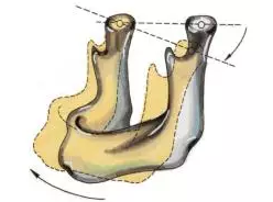 •?下頜平面兩關(guān)節(jié)的軸點(diǎn),與前切牙形成的三角形是等邊三角形,邊長均值為:110毫米,
