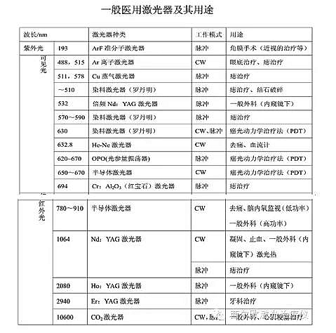 自世界上第一臺(tái)紅寶石激光器以來(lái),已經(jīng)發(fā)展出數(shù)百種的激光器。各種比較成熟的激光器在醫(yī)學(xué)上都獲得了不同程度的應(yīng)用。