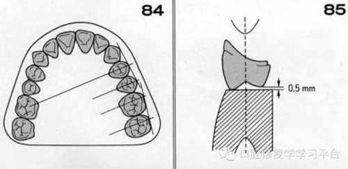 尖牙牙尖以及后牙中央窩連線要求與牙槽嵴頂連線一致。