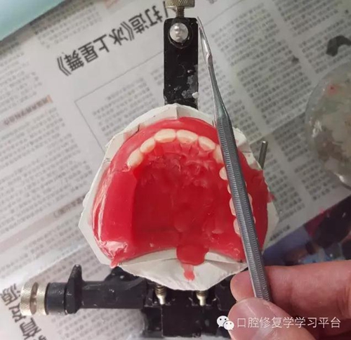 如果人工牙排列位置不對,需要拆下來時(shí),不要將拆下來的人工牙隨意放置。一個(gè)好的習(xí)慣是將拆下來牙齒及時(shí)放于人工牙固定板的原有位置上。