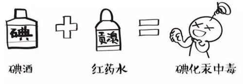 碘酒中含的碘會(huì)與紅藥水中的汞發(fā)生反應(yīng),形成碘化汞,會(huì)沉著在皮膚表面,汞本身就具有毒性,對(duì)身體有害。