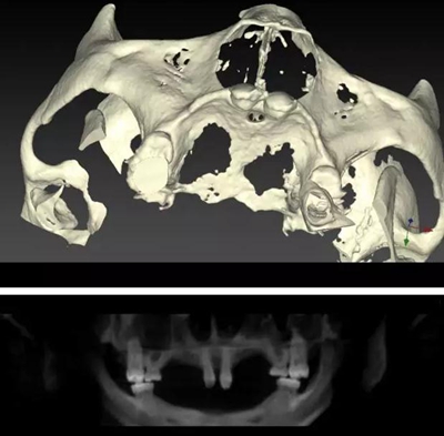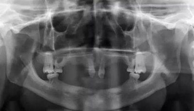 竇內粘膜有明顯增厚。下頜牙槽骨寬度及高度嚴重不足,僅存有基骨。