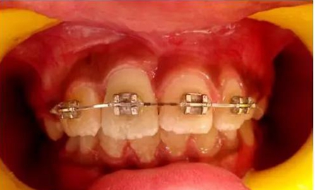 牙齦萎縮也是牙挫入脫位的常見并發(fā)癥。受累牙的牙槽骨可能被破壞。正畸牽引通常是在橡皮圈的幫助下緩慢進(jìn)行的,這種速度允許牙槽骨生長。然而,任何軟組織附著可能影響附著齦的運動,阻礙其恢復(fù)至正常牙齦外形。