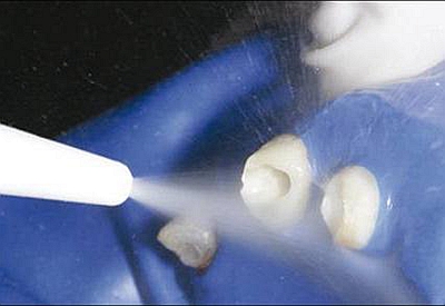 沖洗凈粘接劑,用大號紙尖吸干根管中多余水份,注意保持表面一定的濕度