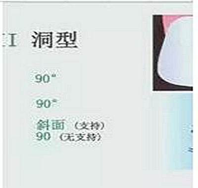 2、IV類洞的預(yù)備:對于腭側(cè)面和鄰面,預(yù)備成90度邊緣(柱狀車針);唇側(cè)預(yù)備淺凹形肩臺(球狀車針)。先粗后細(xì)。