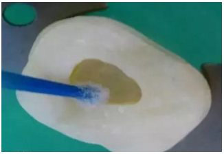 2.最后再用蘸有粘結(jié)劑(注其中必須含有偶聯(lián)劑成分,如3M Single Bond)的粘結(jié)棒涂擦窩洞各個部位(注意控制粘結(jié)劑厚度,因為粘結(jié)劑的厚度除了影響粘結(jié)強度外,還會影響邊緣的密合性等。