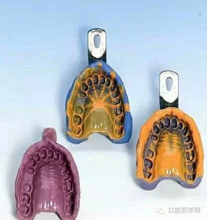 取模時建議使用不銹鋼托盤和硅膠。鋁制托盤和塑料托盤易形變,藻酸鹽印模材易發(fā)生微變,兩者均為不穩(wěn)定因素,從而影響最終的模型質(zhì)量。托盤不能存在倒凹,保證印模材料的流動順暢。取模時保證頰舌側(cè)有均勻厚度的印模材料,有效防止印模形變。