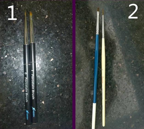 (左邊是日進(jìn)的貂毛筆,右邊是技工的貂毛筆,個(gè)人覺(jué)得不管是性能還是價(jià)格都優(yōu)于日進(jìn)的)
