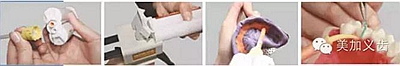 剛打出的輕體,可能會因混合不均勻而影響凝固,建議將前面材料1-50px丟掉;將注有輕體材料的托盤放入口內(nèi),緩慢且一次性就位,約3分30秒材料固化后從口內(nèi)取出;