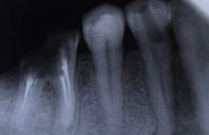 ②幫助確定病牙:如兩牙之間的瘺管插入牙膠尖作牙片檢查,可以顯示牙膠尖偏于某一牙齒。