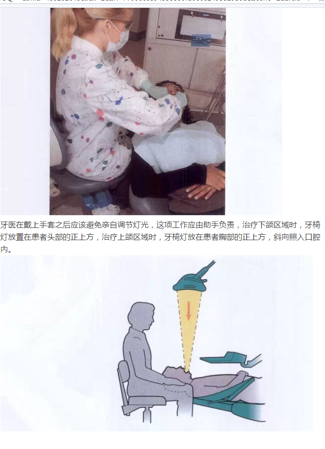 毫無(wú)疑問(wèn),患者都是仰臥在牙椅上,治療上頜時(shí),牙椅椅背要與地面接近平行,患者的腳尖和鼻尖在同一高度;治療下頜時(shí),椅背略微豎起。