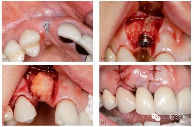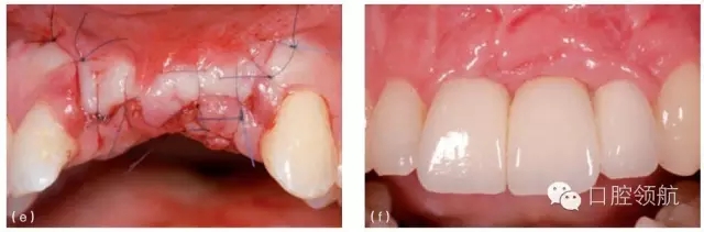 第二種方法是拆除冠和基臺后行軟組織移植,軟組織瓣冠向復(fù)位部分或完全覆蓋種植體(圖8.23a~e)。愈合后,可能需要二期手術(shù)重新連接基臺和冠。該方法的優(yōu)點如下: