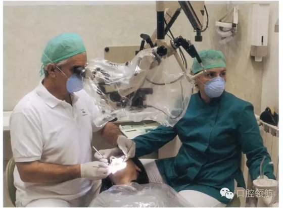 隨著微創(chuàng)手術(shù)技術(shù)的發(fā)展,手術(shù)顯微鏡也逐漸應用于其中[微創(chuàng)手術(shù)技術(shù)(MIST)和改良的微創(chuàng)手術(shù)技術(shù)(M-MIST)]。在大多數(shù)報道的病例中,MIST手術(shù)采用唇側(cè)翻瓣,這也許是受手術(shù)顯微鏡使用的影響。而在后牙區(qū)和舌面使用手術(shù)顯微鏡將需要非常豐富的經(jīng)驗技術(shù)支持,同時需要使用口鏡反光以彌補顯微鏡無法直視的手術(shù)視野。