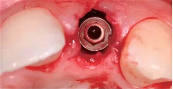 圖2 種植體離開唇側(cè)骨板2mm
