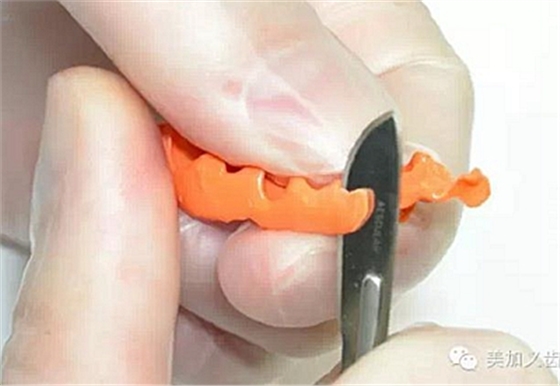 那些垂直向很穩(wěn)定而水平向不穩(wěn)定的患者模型就需要作咬合記錄。彈性聚乙烯材料適合作需要水平穩(wěn)定型咬合記錄。但是這種材料假如修整的不好效果就要打折。那些和軟組織以及牙體軸面接觸的區(qū)域要修掉,目的是讓模型和記錄材料接觸面積最小,醫(yī)生可以直視模型是如何與咬合記錄接觸,確保咬合記錄只是保證模型水平向的穩(wěn)定性,垂直向的穩(wěn)定性由接觸的牙齒提供。