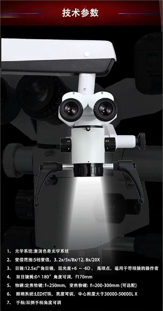 帶高清內置分光的鐘擺系統(tǒng),方便術中調節(jié):左右傾擺≤±15°;