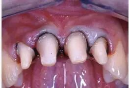 7.牙齦增生、齦溝深度超過2mm以上者,可采用高頻電刀做齦切術,切除部分牙齦袋,使齦溝深度恢復正常。待局部牙齦恢復正常形態(tài)后,可使用排齦線排齦后取模。